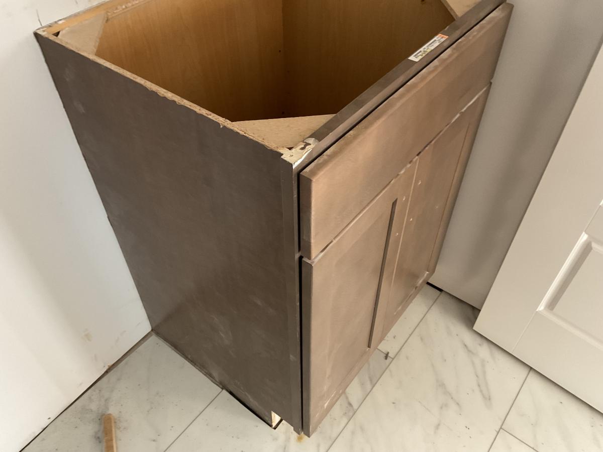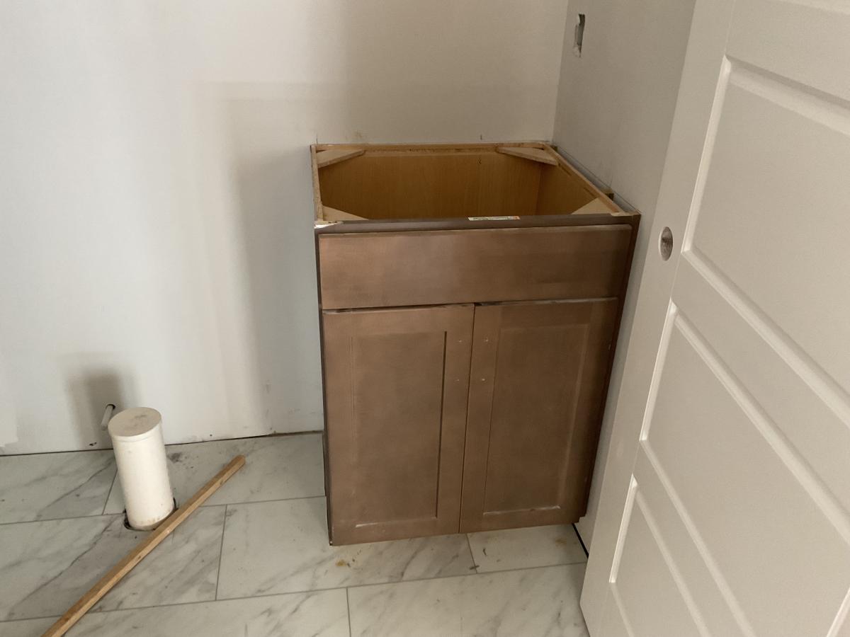 | -- | -- | Does the vanity in the bonus room have hardware or countertop? | Does it look OK after taking off filler strip | |