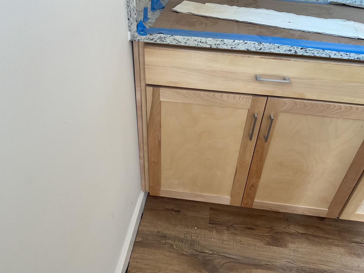 There’s a relatively large gap between the cabinet and the wall on the cabinet closest to the kitchen window. Can something be done to patch? |
